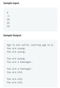 should print that the person is a teenager. Three years pass and age = 19, so we print that the person is old.
